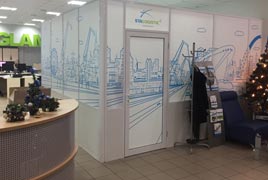 интерьерной печатью в офисе логистической компании. Работы по монтажу