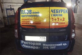 | Реклама на Lada Largus В рекламную кампанию для акции, проводимой рестораном, включили рекламу на авто: читать далее...Смотреть ещё в альбоме › Реклама и брендирование автомобилей для компаний. Техническое задание для оформления данного автомобиля было - создать из исходника рекламу для акции, проводимой рестораном. Наши сотрудники, создавая макет для печати, адаптивно разместили рекламный материал под размеры и элементы кузова Lada Largus. Затем произвели широкоформатную печать и оклейку автомобиля. #пленкаоракал #пвхпленка #рекламныепленки #брендированиеавтомобилей #брендирование #SolarGlass | |